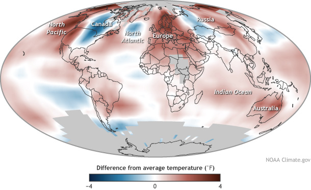 2014 average sea surface temperature, relative to the 1981-2010 average. Image courtesy: American Meteorological Society.