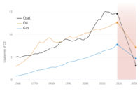 For example diesel, petrol and jet fuel have different emissions factors and Carbon Brief’s analysis accounts for this where possible. This adjustment is based on the quantity of each fuel type used per year, drawn from separate BEIS figures covering oil, coal and gas.